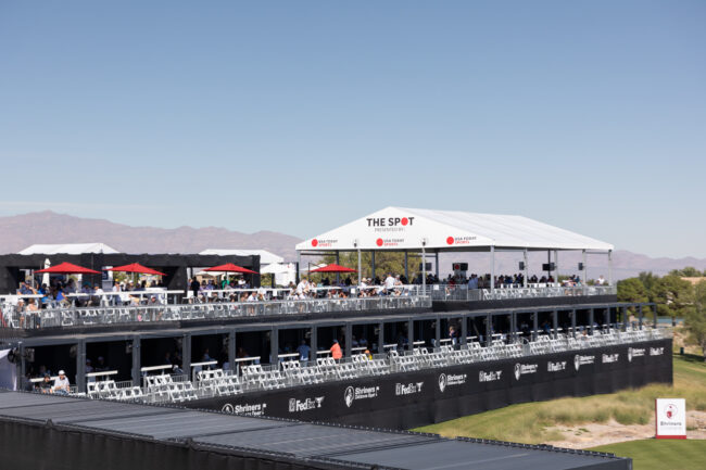 Overlooking TPC Summerlin’s dramatic closing holes, The Spot presented by USA TODAY SPORTS gives you and your guests a bird’s eye view of the PGA TOUR’s greatest stars. This is perfect for companies looking for a more lively setting to entertain their clients and a perfect spot for a possible playoff finish!